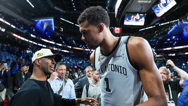半決賽結(jié)束后,克里斯·保羅被拍到與維克托·溫巴尼亞馬以及一些前馬刺隊(duì)友擁抱??梢钥隙ǖ氖牵@些前隊(duì)友對(duì)保羅在洛杉磯快船隊(duì)的表現(xiàn)感到驚訝。
