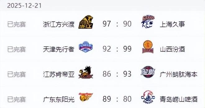 2025年12月21日 山西5人上雙送天津4連敗 賈明儒18+5 焦海龍14+6 林庭謙16+8