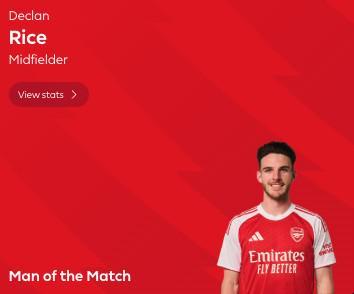 最終經過英超官網球迷投票,賴斯以51%的得票率當選全場最佳球員。