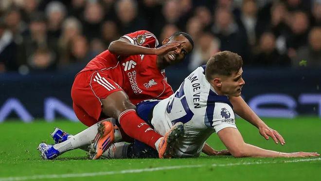 此役,斯洛特在客場排出了4231的單箭頭陣型,狀態(tài)火熱的埃基蒂克擔任球隊單箭頭。上半場比賽,布拉德利在與斯彭斯相撞之后曾試圖堅持比賽,但中場休息時還是被伊薩克換下。伊薩克登場之后,受到了熱刺球員的重點照顧。第54分鐘,本坦庫爾曾在禁區(qū)前沿踩踏伊薩克大腿內側,導致后者痛苦倒地。經(jīng)過VAR檢查之后,裁判并未進行任何吹罰。
