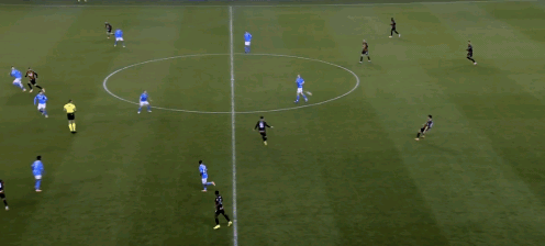 15:52奪回球權后不斷控球在外圍倒腳,直到18:10以薩勒馬克爾斯在右邊路送出一記傳中結束。隨后繼續掌握球權,回傳回撤,19:02,麥尼昂無壓迫下滑倒式長傳,恩昆庫第一點頂高彈起,那不勒斯門將回收球權。