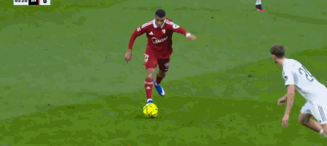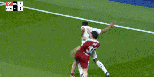 第41分鐘,貝林厄姆直塞,羅德里戈前插禁區倒地被判假摔染黃。